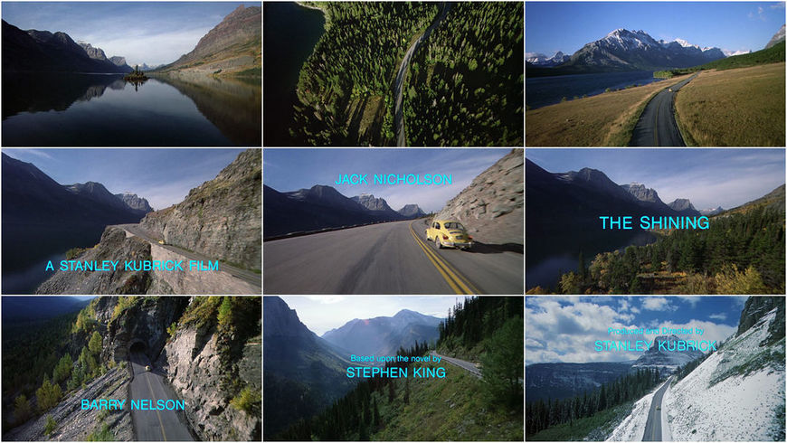Stanley Kubrick repeated this trope with the opening credits of The Shining. As the Torrance family drives towards the haunted Overlook Hotel, the camera swoops in and follows them from above as they drive, once again implying an unseen force is already at play.