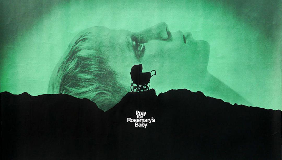 Rosemary's Baby (1968) quad poster art featuring the "Pray for Rosemary's Baby" tagline.