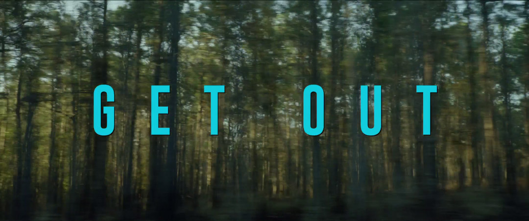 Jordan Peele’s 2017 film Get Out employs a similar theme with turquoise text and Michael Abels’ main title theme “Sikiliza Kwa Wahenga” set against the unfamiliar backdrop, transforming the title card into a warning coded to the tell audience that something is amiss.