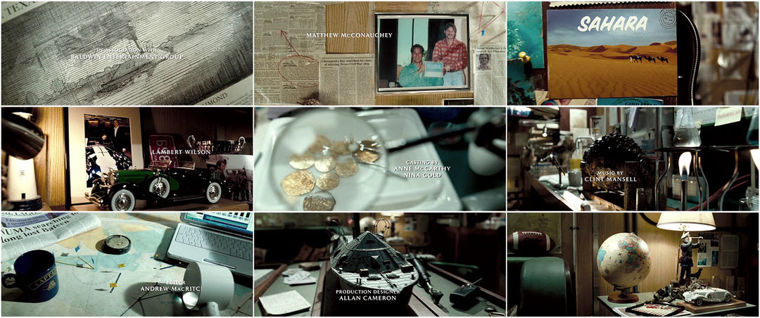 Even though it was panned by critics, disowned by the original author, and a box office failure, Sahara has a beautifully-executed single take motion-control camera opening that details the hero's history. It also bears a striking similarity to Delicatessen's opening montage.