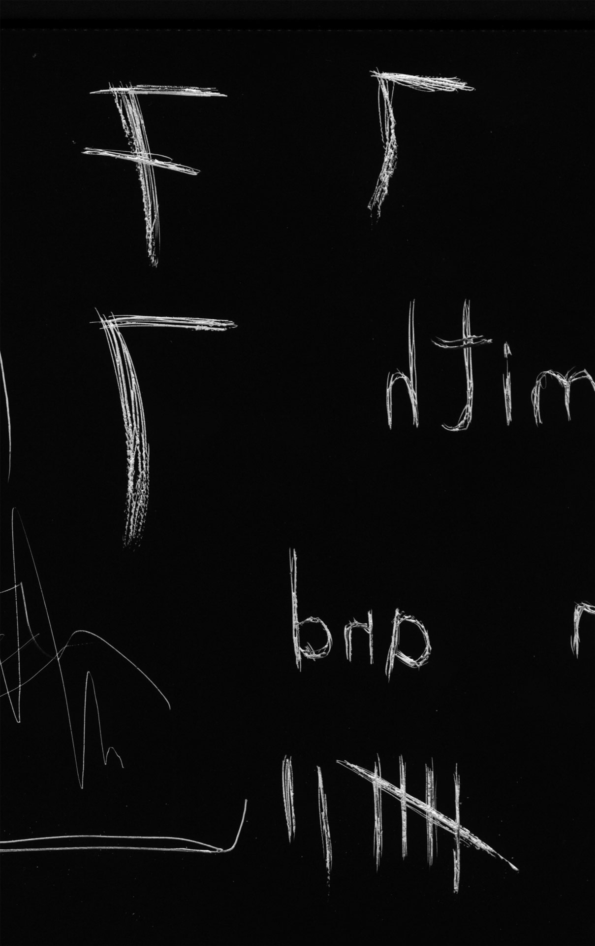 The typography itself – which would likely break several guild legibility rules in modern times – was hand-etched into black-surface scratchboard and manipulated during the film transfer process to further smear and jitter it. This transfer was then cut up and reassembled during post production to add a final layer of temporal distress.