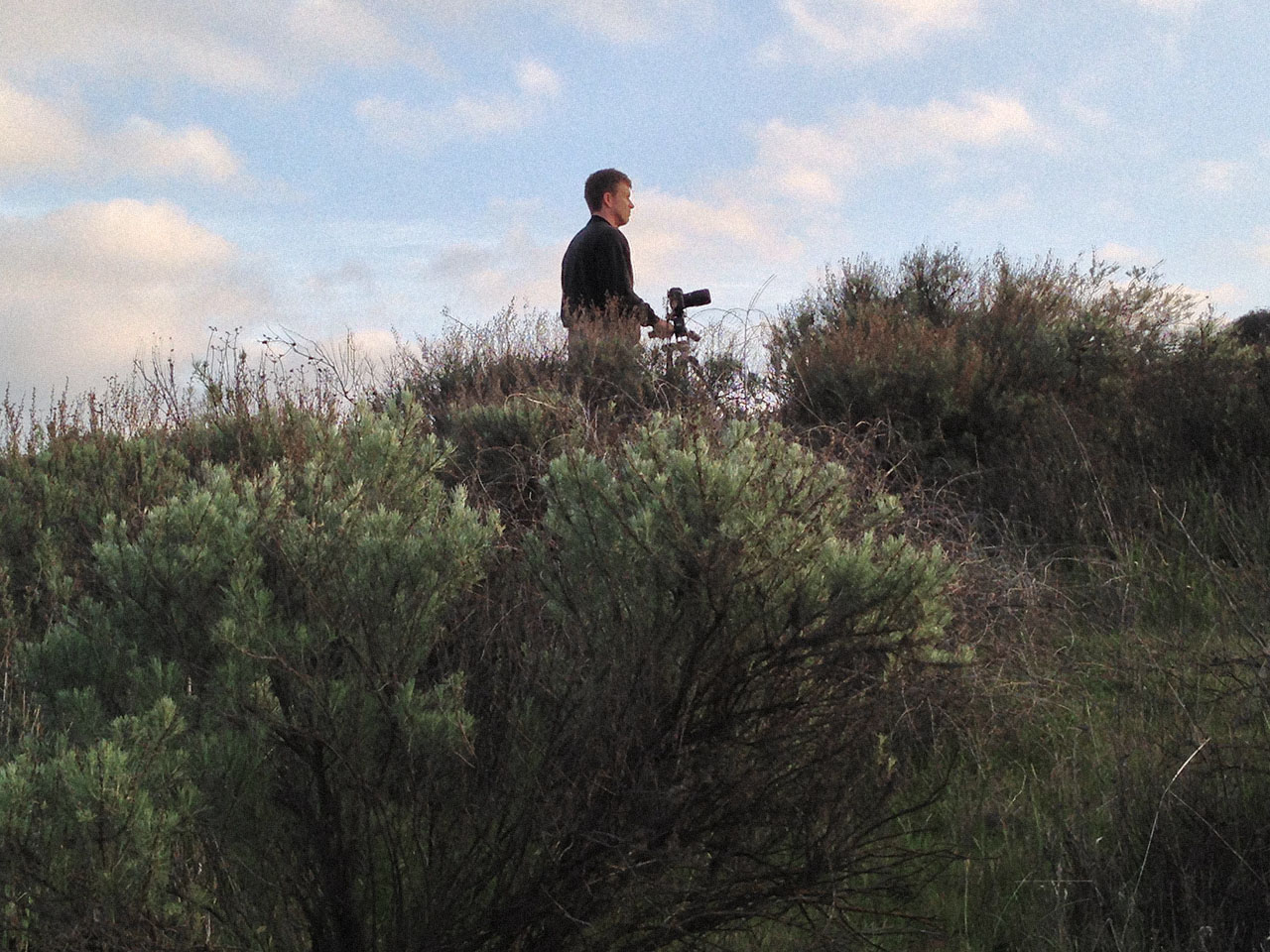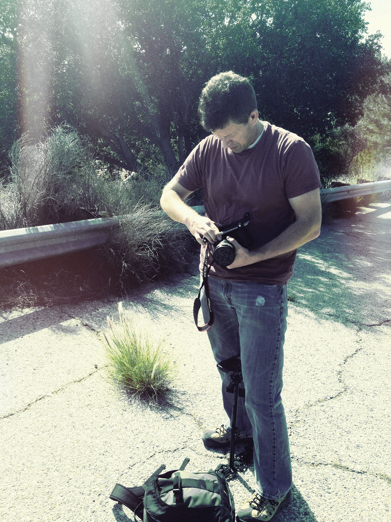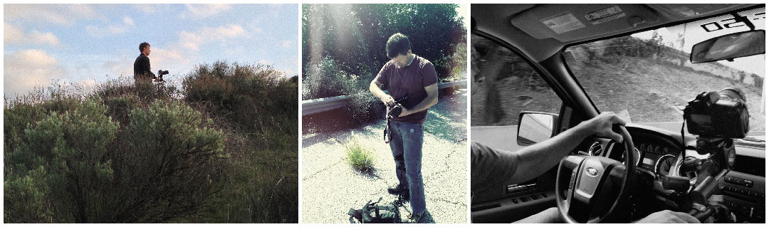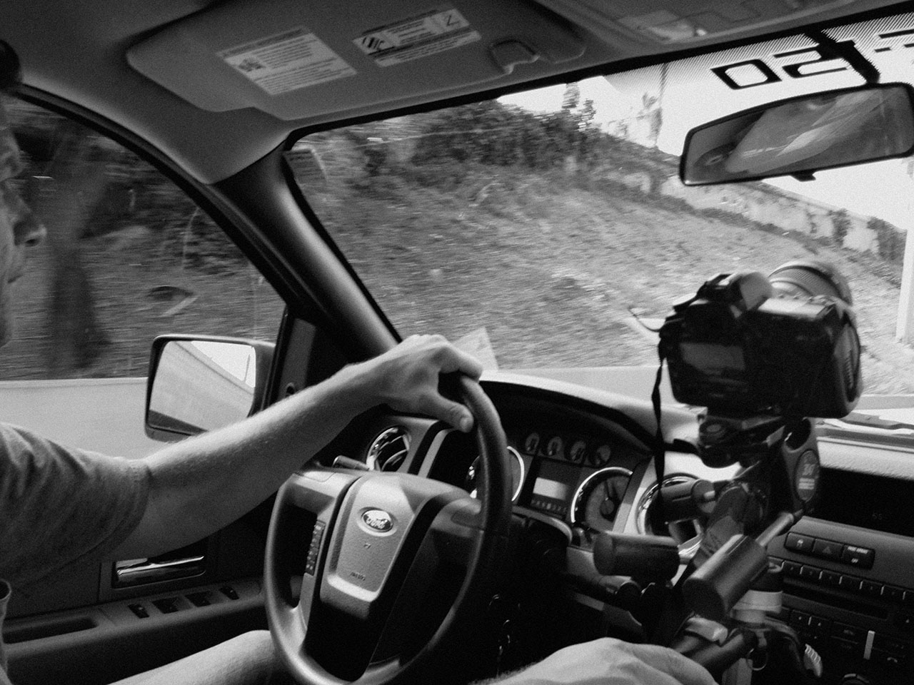I just jumped in the car with my 5D mounted on a tripod and started shooting road footage! After several attempts I learned what worked and what did not. For example, the camera had to be at a certain angle both upwards and sideways and mounted in a specific horizontal position to take advantage of the scene geometry. And I needed to travel at a consistent speed.