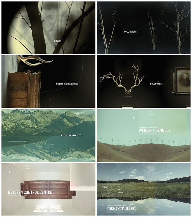 A hypnotic beat commands the attention of the viewer while mirrored images play as the backdrop to crisp and curiously set type. Peaceful hallucinations of forest and sky give way to vast cities, their coloring hitting that sweet spot between a vintage wash and an elegant polish.