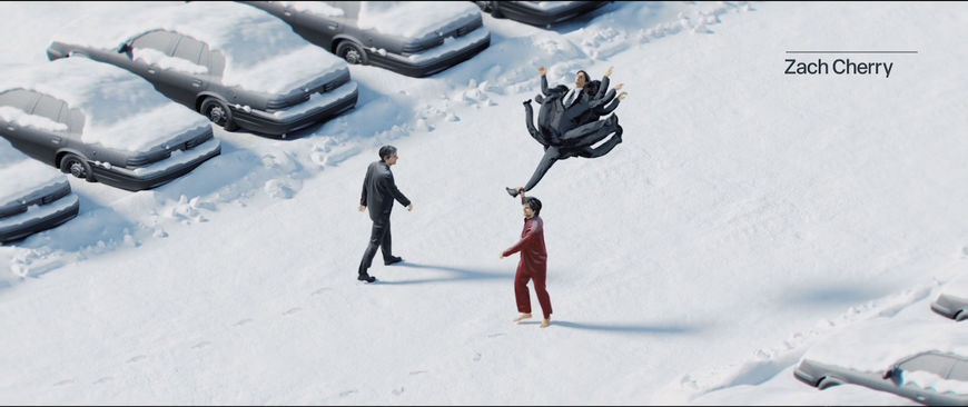 The thrilling Apple TV+ series is centered around Mark Scout (Adam Scott), a man who has surgically separated his work and home lives. Called “outies” and “innies,” these selves spend the title sequence stumbling through snowy parking lots and stark corporate hallways. They melt through walls and furniture, become trapped in versions of themselves, get sucked up through a syringe and liquify into a suffocating ooze. The uncanny animation was all created by Latta, a CGI artist based in Berlin whose work often focuses on the human body. Stretching it, dismembering it, multiplying, squishing and squeezing it. The unsettling figures are paired with minimal typography featuring a simple overline designed by Teddy Blanks (Listen Up Philip, Catherine Called Birdy) and matched with music by composer Theodore Shapiro.