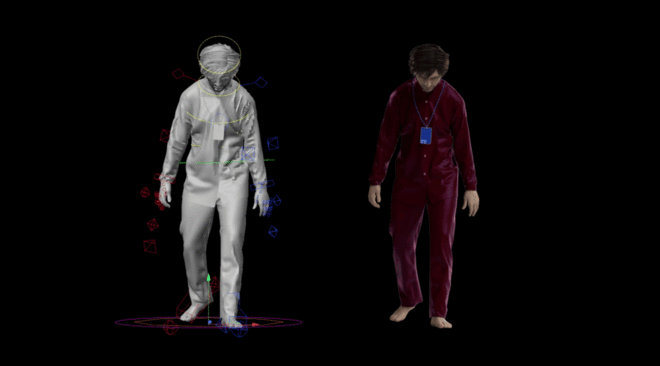 OL: It’s a mix! For the animatic I used preset mo-caps from the internet, just as a placeholder, to get the timing. You can spend a lot of time on character animation otherwise. Since the timing wasn’t defined – the cuts – I jumped into my mo-cap suit, which I own, and I did it in my studio. In the middle when he comes out of the doors, this is me. I just mixed stuff. At the beginning it’s more dream-like.