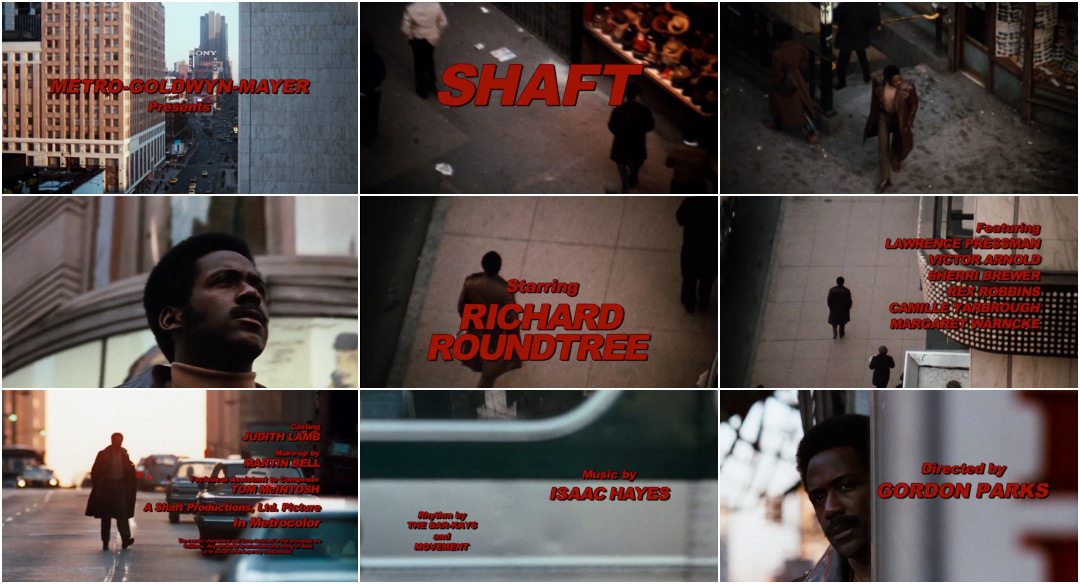 Credits Title Design: uncredited Music: "Theme from Shaft" by Isaac HayesRhythm: The Bar-Kays and Movement Support Art of the TItle Related Vigilantes, Psychopaths, and Road Warriors: B-Movie Title Design of the 1970s & 1980s feature Dirty Harry summary Foxy Brown summary Medium Cool title only The Conversation summary The Warriors summary