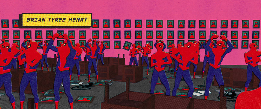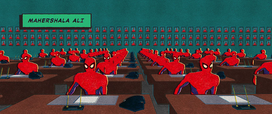 Brian: We wanted to create a narrative structure which begins with Miles and populates the screen with more and more Spider-characters. By the time we reach this last section, the density gets pretty ridiculous. Between the infinite number of Spider-Men, the kaleidoscopic reflections, and the contrasting scales and colors, this last chapter feels like a surreal Spider-Man landscape; almost like a Spider-centric version of a “Where’s Waldo?” book spread.
