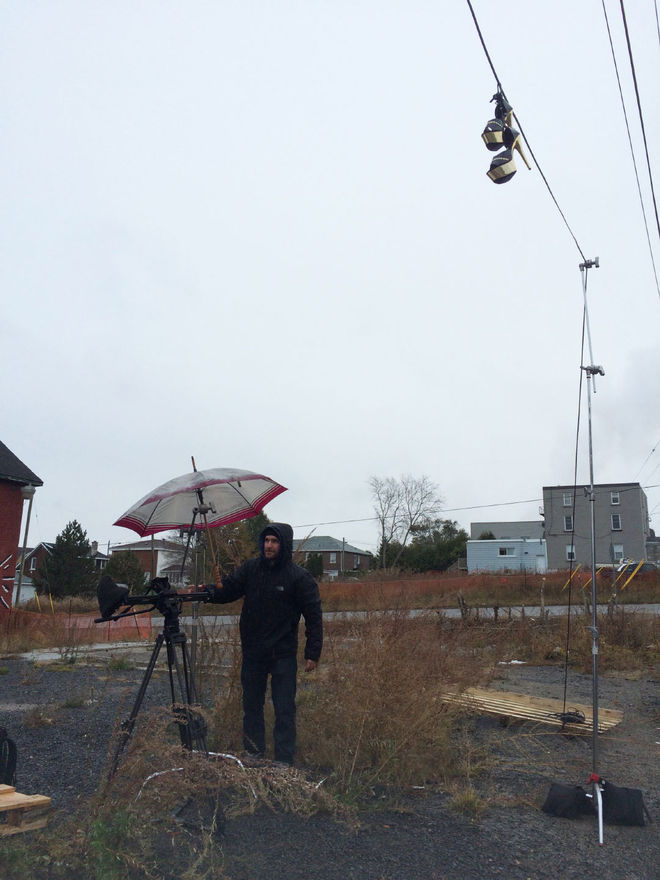 Shooting the L-shaped neon on-location in Sudbury