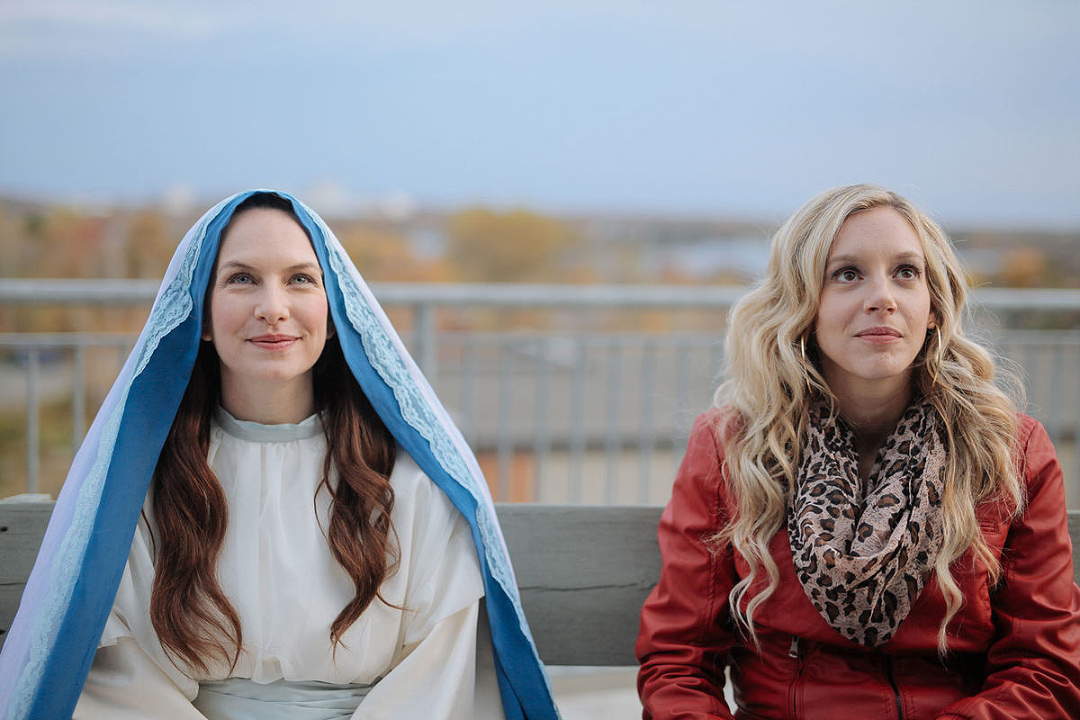 The Virgin Mary (Marie-Josée Colburn) and exotic dancer Nicole (Noémie Yelle) in a publicity still from St-Nickel.