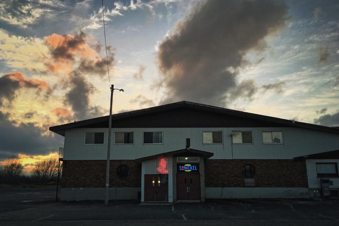 The opening of St-Nickel exposes a Sudbury, Ontario that most have never seen. As the sun goes down a different kind of city wakes up. It’s the time of day when baristas and business people co-exist with barflies and bikers for the briefest of moments, when the red lights of the local peeler bar and the rusty hues of the northern sky become one and the same. Neon signs enlighten the city about its new state of being, leading many into temptation and other kinds of worship with that ceaseless, ever-present buzz.