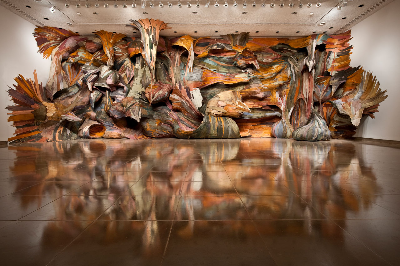 Michelle: A friend of mine who works here recently showed me this amazing artist named Henrique Oliveira. He’s a Brazilian artist who does all of these things with what looks like wood. I just saw that yesterday and was like wow!
