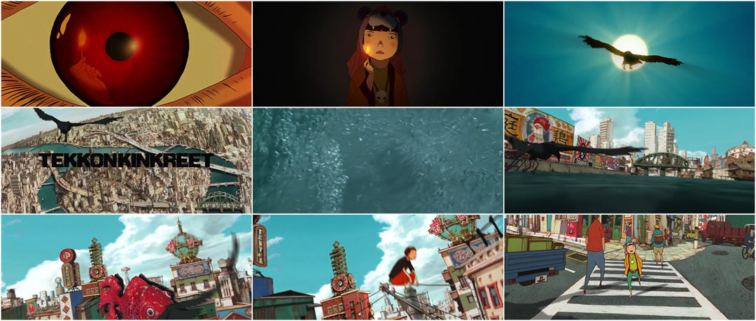 The first minute-and-a-half was not in Taiyo Matsumoto's original Manga, Tekkon Kinkreet. This [beginning] sets the tone...the shot [of the raven's flight] is the first thing we actually executed. I thought we'd take the hardest shot first and figure how far we could take it and that would set the pace for the rest of the production.