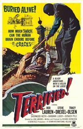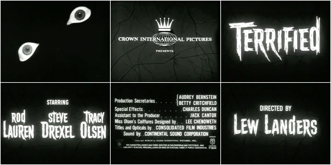 The cold opening to Terrified is both ambiguous and haunting: a ghost town, an overgrown graveyard, coyotes and unknown creatures of the night at its edges. Amongst the tombstones, a masked villain taunts a bound man as he slowly drowns him in an open grave. Its title sequence is an extension of his terror, zooming in on his bloodshot eyes, then his dilating pupils to frame the main title card and subsequent credits.