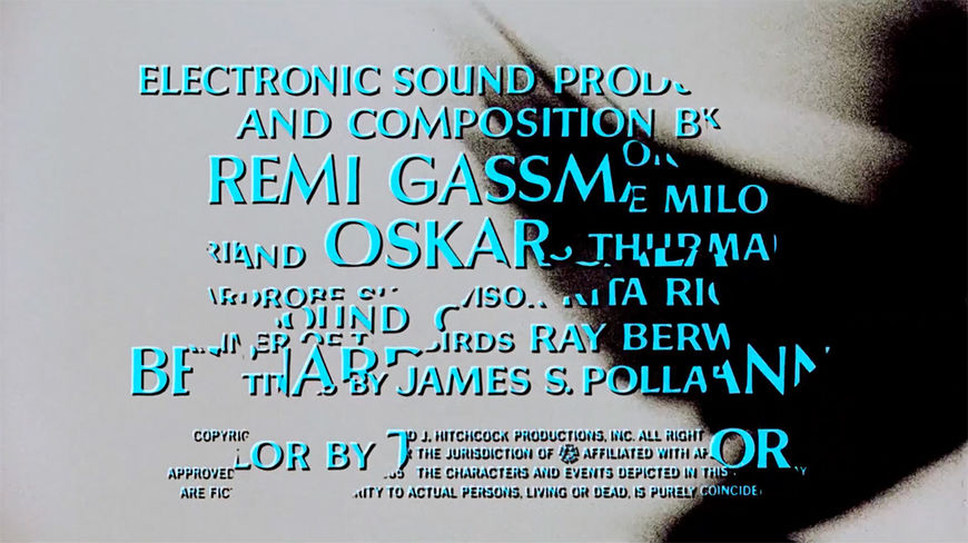 Pollak's work that same year for The Birds is another beast altogether. The film's title sequence is a cacophony of consonance, all shrieks and screams, flutters and flaps; a rush of mechanical bird noises scraping roughly through sheer space.