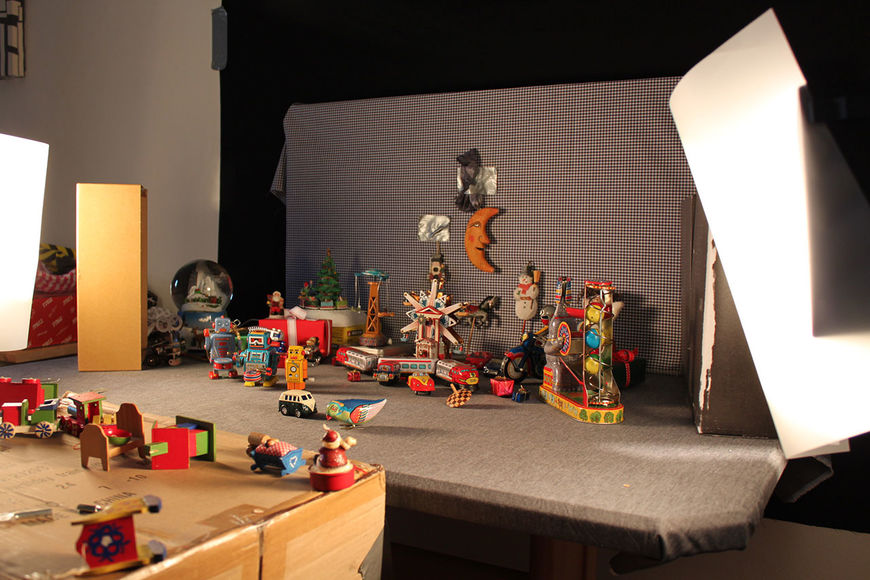 The idea was that we see some little scenes and toys in a shopping window. This was the main theme. Then I thought about what we could show, threw some ideas together, experimented a little bit, and bought a lot of toys!