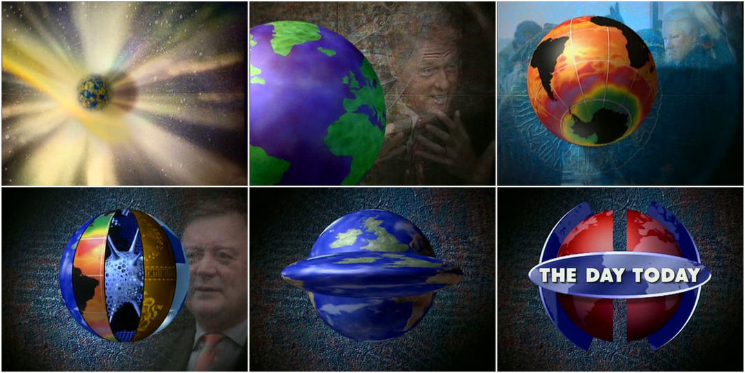 The title sequence followed suit with this approach. It was based on the classic news globe – a graphic device featured in many, if not all news programmes. But The Day Today wouldn’t have one globe, or two globes… it would have loads of globes. And each globe would be styled differently to reflect a different aspect of news.
