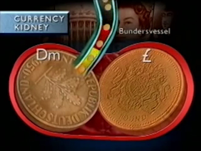 Adding dramatic weight to the phony broadcast was the barrage of hilariously unnecessary infographics, graphics, and spinning globes – so many globes – for the team of self-serious anchors to riff on and react to. 3D graphics were all the rage on news broadcasts in the early 1990s, and the producers, along with designers Richard Norley and Russell Hilliard, exploited this to full effect. Norley and Hilliard, who worked as “real news” graphics designers for ITN by day, won the contract by creating a humourous pitch about the IRA using dogs as bombs. The graphics team took five months to create the funny, excessive, and often purposefully incomprehensible graphics that became a staple of The Day Today, which scored them a 1994 BAFTA for Television Graphic Design.