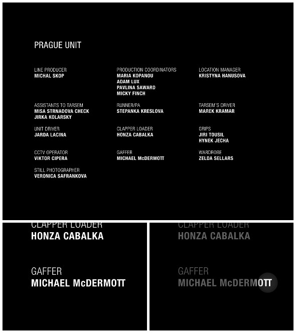 This is also how I got involved in the typography for the rest of the titles and end credits. Tarsem had done some rough versions of the type for the opening credits and showed it to me. Less than perfect type is personally upsetting to me, and I felt that the typography for The Fall should be as beautifully considered as the film itself, so I basically pleaded that he let me do the job. Luckily, if there's anybody who understands that sort of urgent artistic need, it's Tarsem.