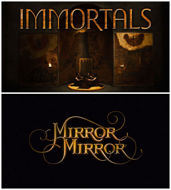 With Immortals, the title lives in the space of the Temple of the Oracles. Originally, we got introduced to the oracles in a long, slow pan as they're walking on a red circular pad. The type was meant to be a massive, somewhat menacing three-dimensional object in this room. I chose a heavy, compressed typeface that I modified to be even heavier and more compressed. Tarsem's brilliant production designer Tom Foden suggested I give it the gold brick texture of the jail of the Titans that appears early in the movie.