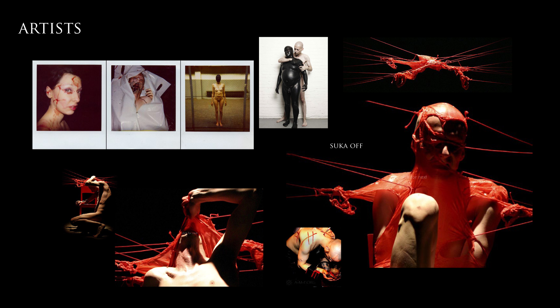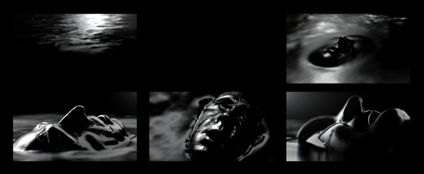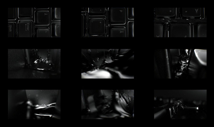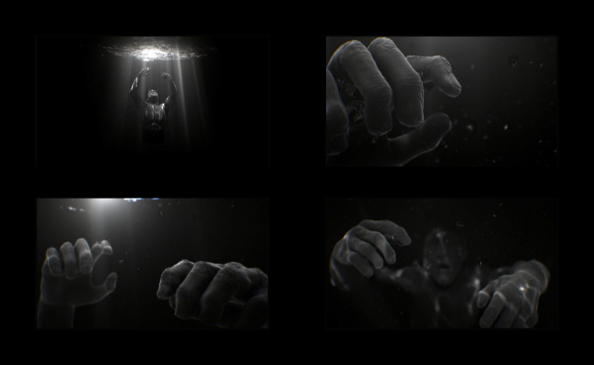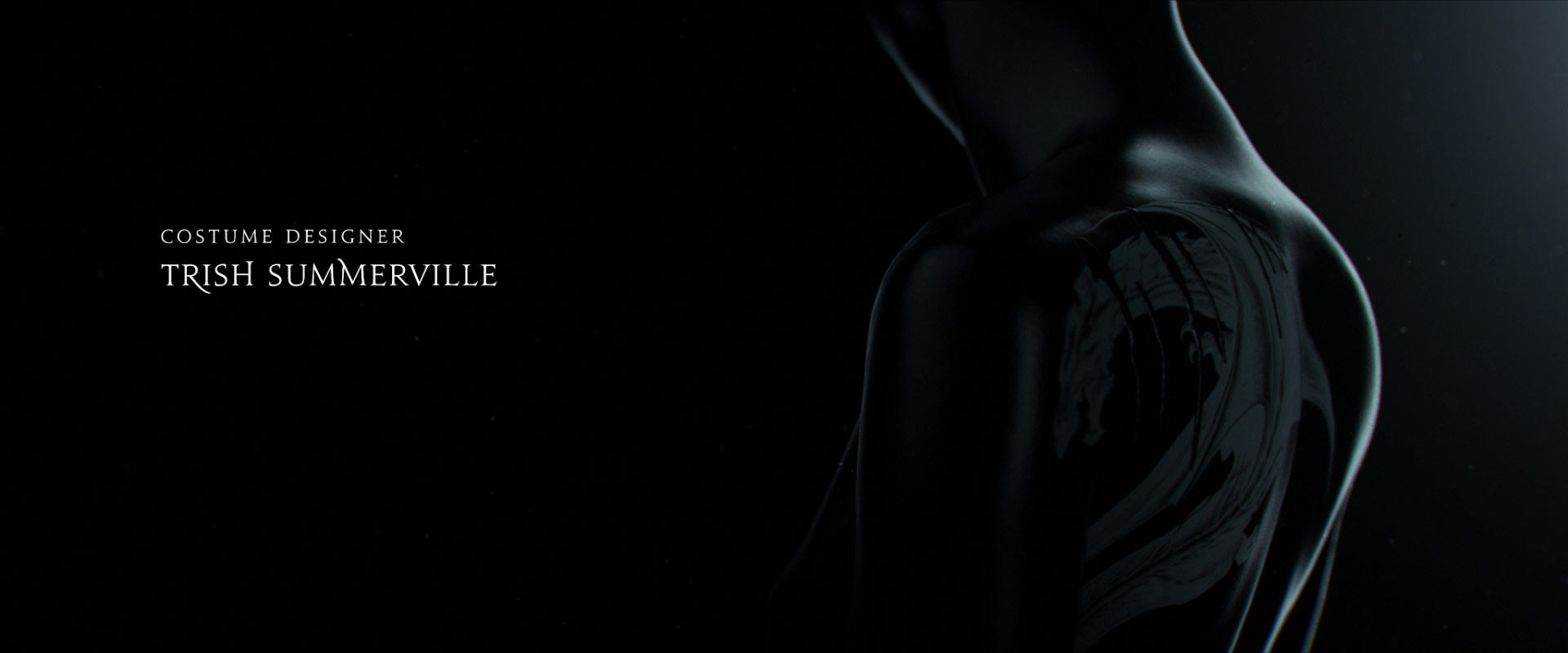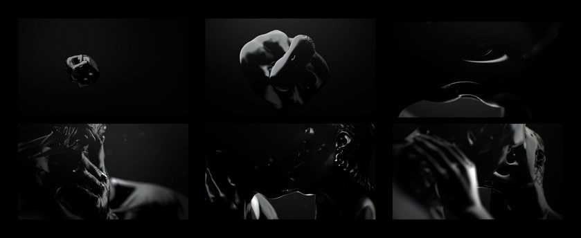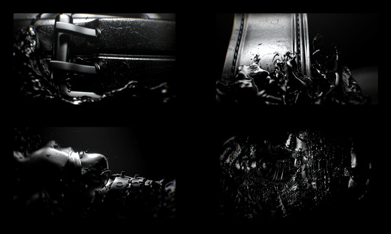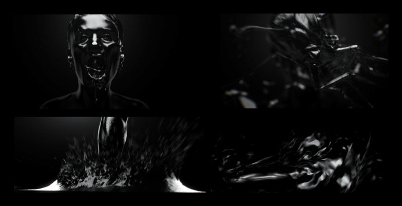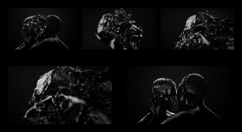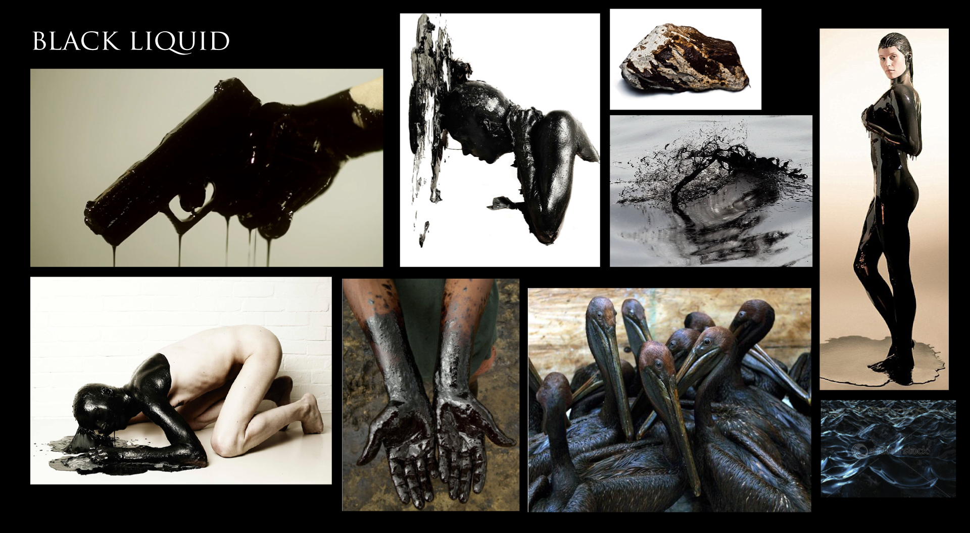 TM: In the initial reference imagery we found several pieces that involved liquid in various ways. And one of the artists that we found was a fine artist who would paint himself – pour oil and black paint all over himself and stand in a gallery. There was also this other one who would immerse herself in black liquid and make photos of herself emerging from it. David responded to that and said, ‘Let’s use black ooze as a unifying element throughout the vignettes.’ Everyone’s had a bad dream where they are caught in some molasses-like substance and not able to move. It just fit.