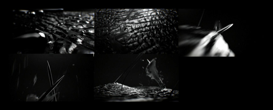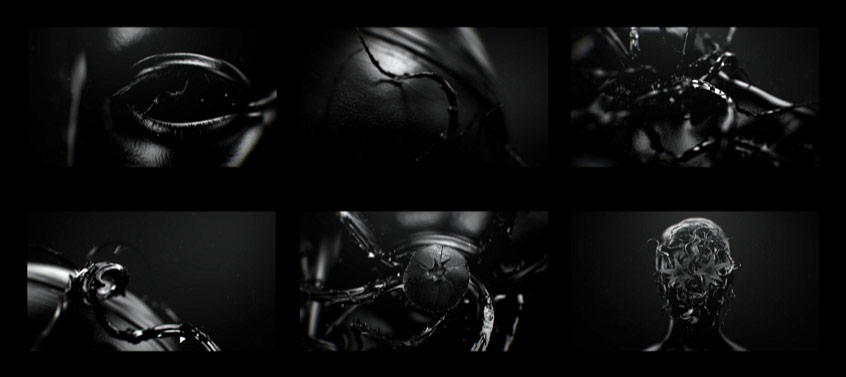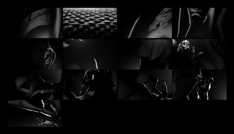 TM: It was an ongoing, very organic process. David’s initial creative brief was frighteningly vague – it said, and I quote: ‘CG, very adult, super dark, leather, skin, blood, snow, breasts, vaginas, needles, piercings, motorcycles, vengeance.’ He said he wanted it to be like a fever dream, with a lot of abstract imagery.