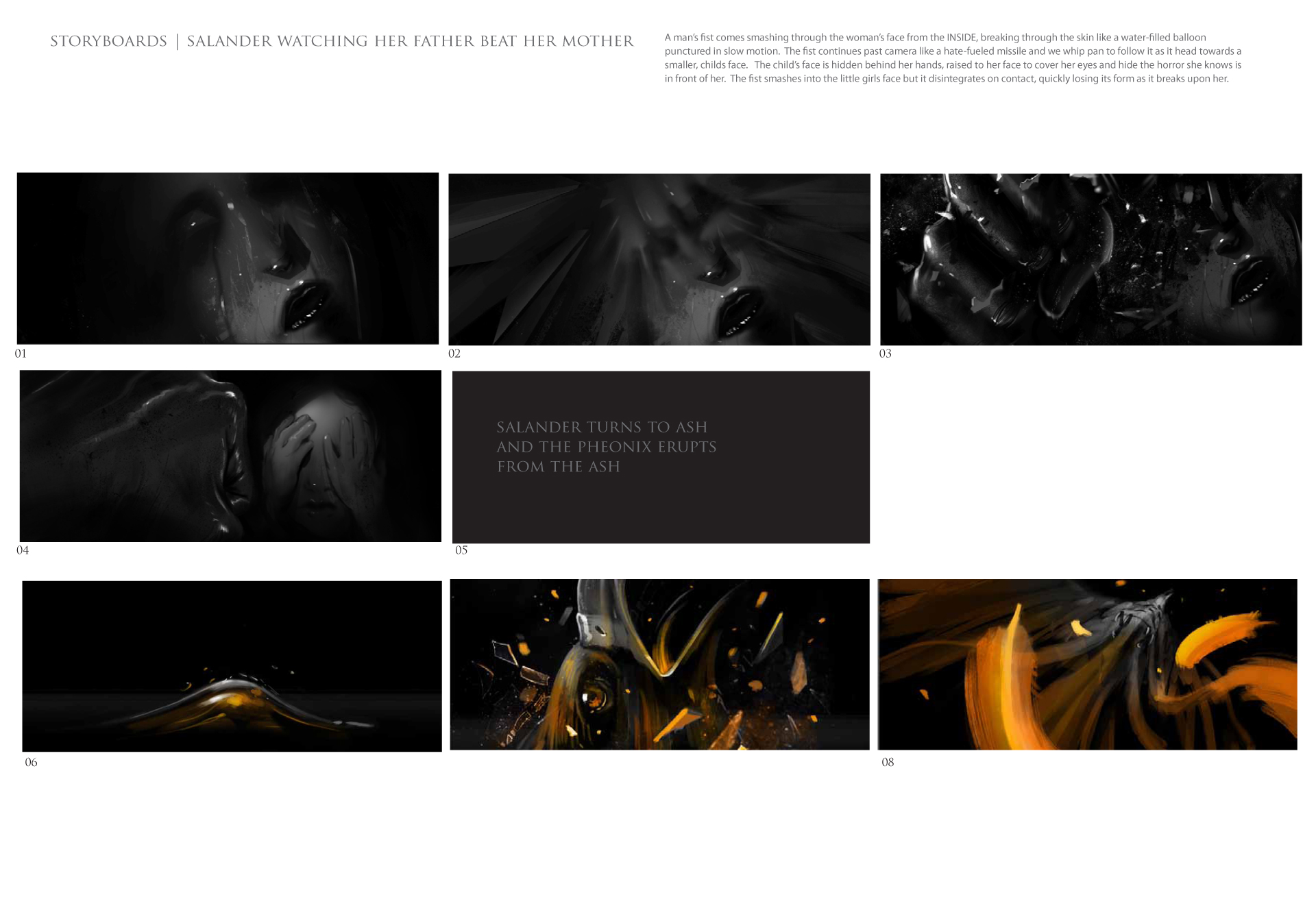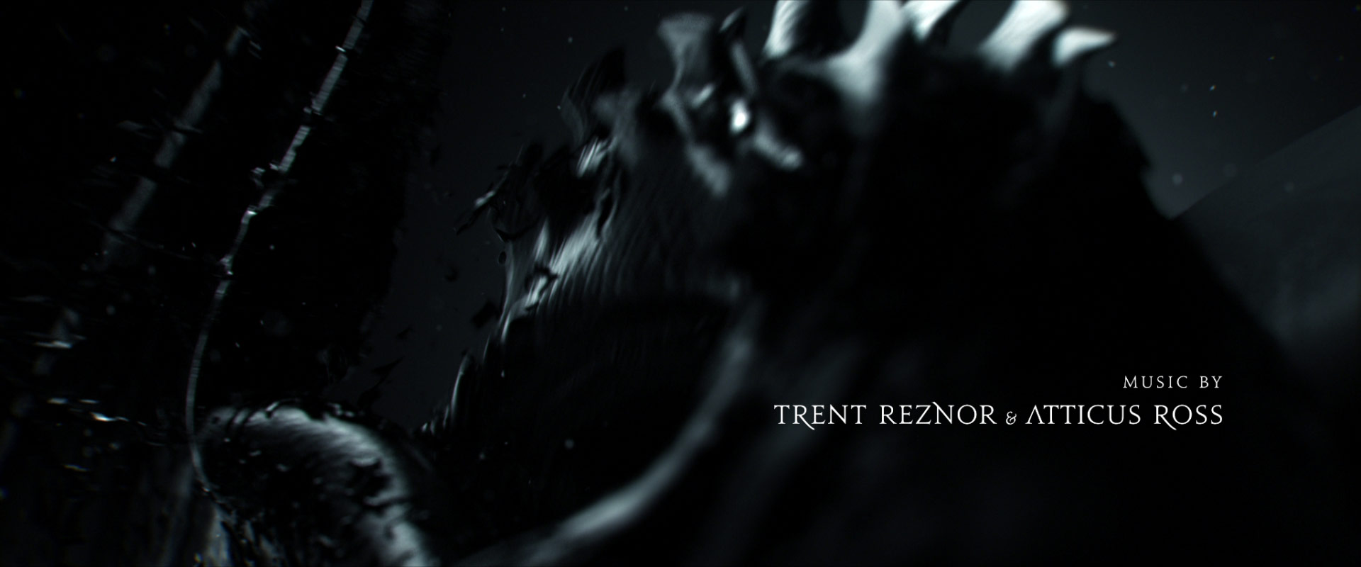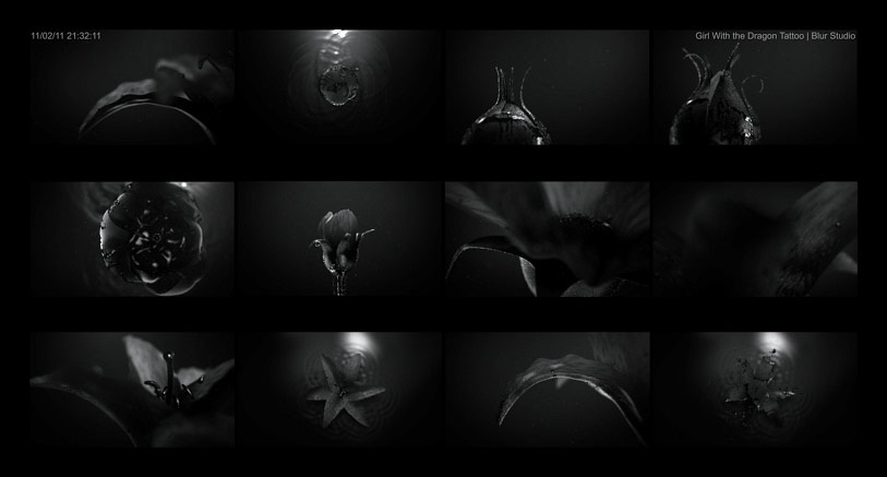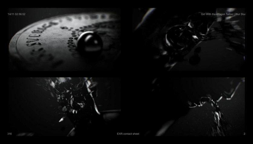 The fluids in each vignette were different, some were very complex and liquid-heavy, and some were simple. For example, there’s a close-up of Salander’s lips with liquid pouring out of them which was relatively simple, almost an afterthought.