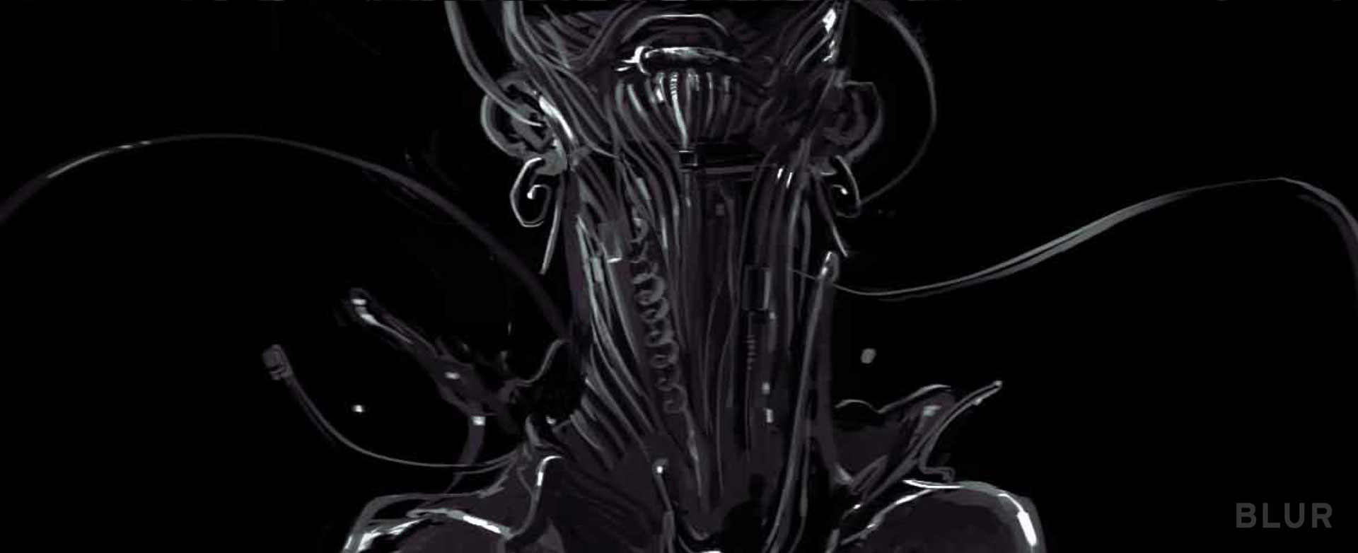 DF: I said, ‘Let's find an artist – our H. R. Giger – that we can use as a jumping-off point.’ Tim found a guy who had been stretched in latex and then he sent me this odd heavy metal music video that was kind of close. I told him to keep playing with ideas.