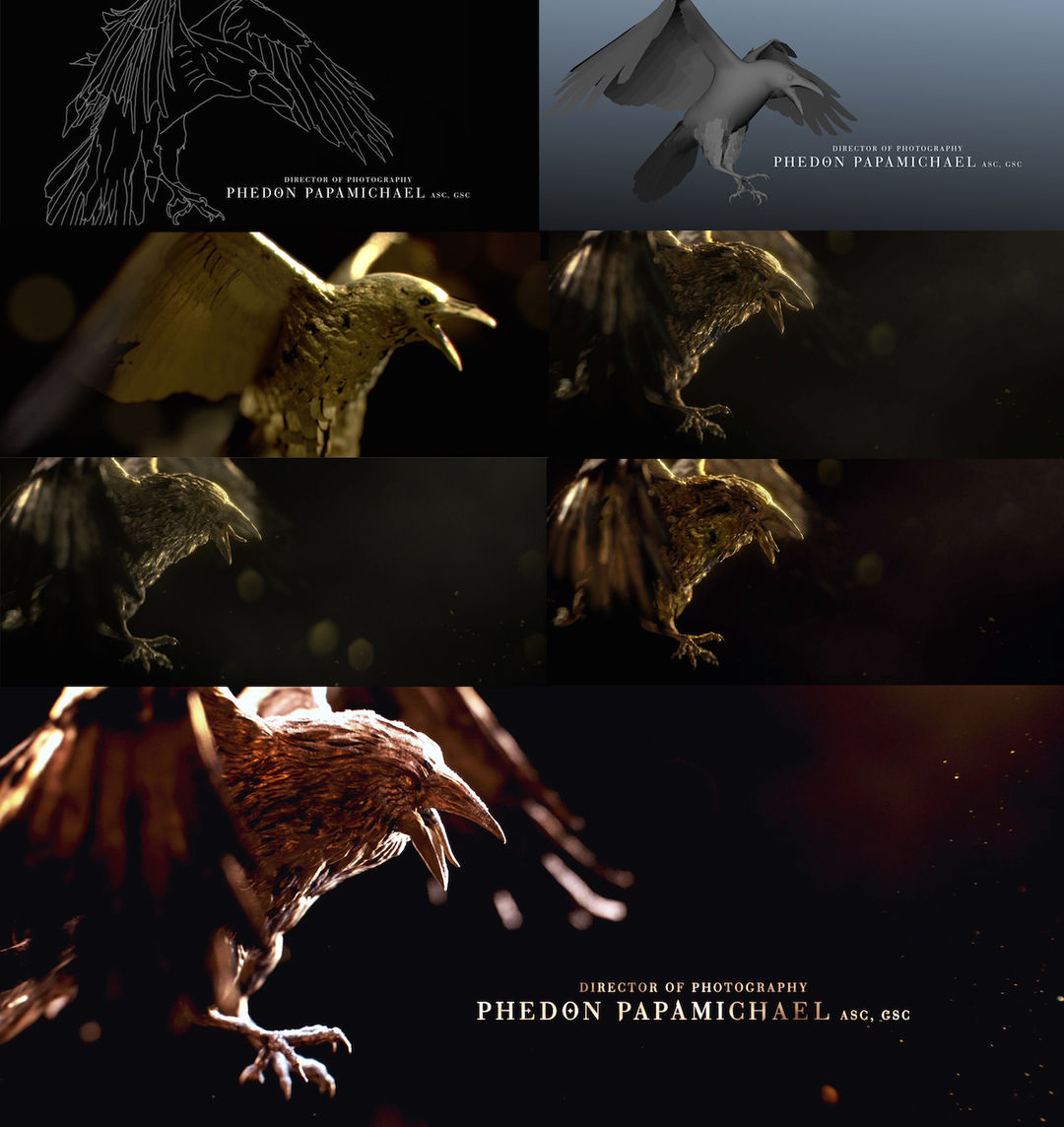 Initial previs test of the raven, looking at how it would need to move to match the 3D camera moves and impact