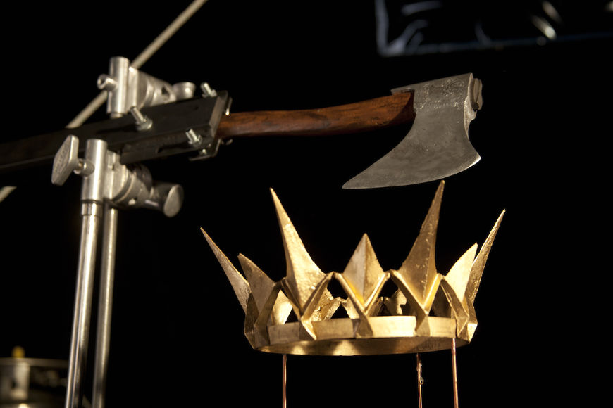 BOLT motion control camera on set, shooting the golden crown being shattered by the axe on the rig with DP Jim Matlotz in the background