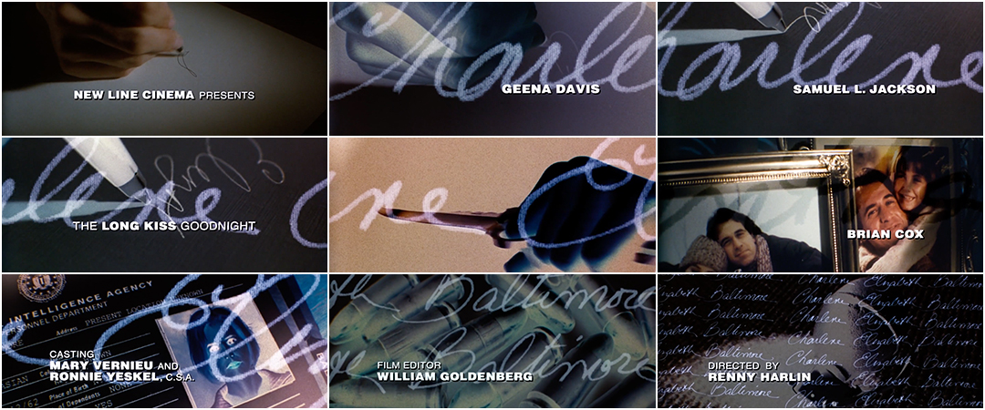 The Long Kiss Goodnight (1996) title card Credits Main Titles by: Schluter Design, Inc. Titles and Opticals by: Pacific Title Music by: Alan Silvestri Support Art of the TItle Related Demolition Man summary Mission: Impossible II summary Domino summary Speed summary Tank Girl interview Zodiac summary