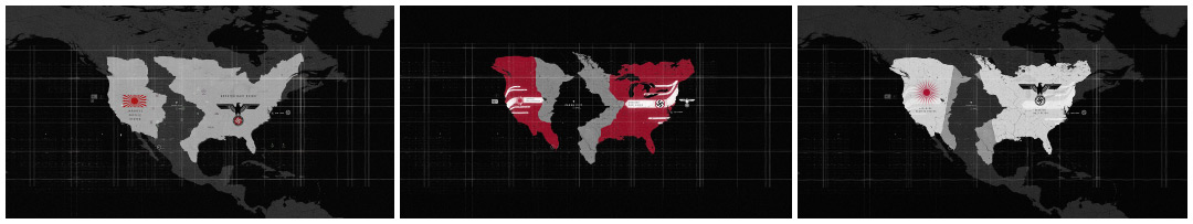 The Man in the High Castle title sequence posed an interesting challenge. Dick’s story is complex and layered and the titles really needed to do some heavy lifting in terms of establishing the concept of an alternate history and timeline. They also needed to establish the geography of a USA divided into two conquered states, poised in an emerging cold war between Japan and the Third Reich. At the same time, they could not get bogged down in informational or expositional storytelling. Like all main titles, these needed be seductive and poetic, evoking the characters and drawing the audience into the world of the show.