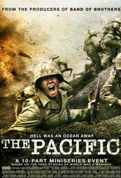 In the main title sequence of The Pacific, the 2010 miniseries produced by HBO, Playtone, and Dreamworks, the faces of men are rendered rough and dark, streaked with war.