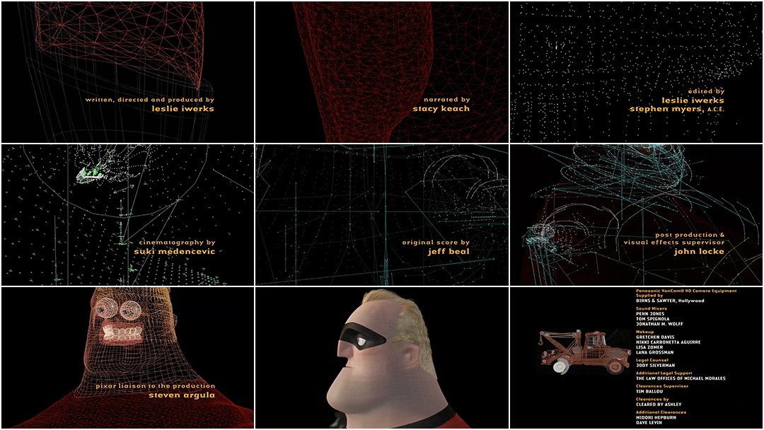 End Credit Wireframe Montage Created by: Andrew Jimenez, Osnat Shurer, Elyse Klaidman, Gary Rydstrom, E. J. Holowicki, Alex Stahl, Becky Neiman, Deann Cobb, Josh Qualtieri, M. T. Silva, Steven James, Susan Bradley, Leeann Alameda