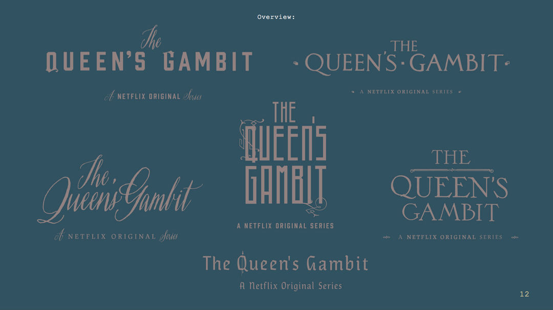 Slide of initial title typography sketches for The Queen's Gambit by Saskia Marka