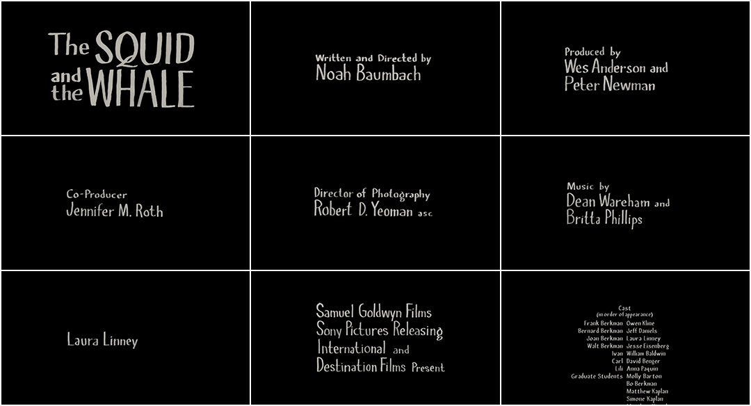 The Squid and the Whale title card featuring lettering by Leanne Shapton