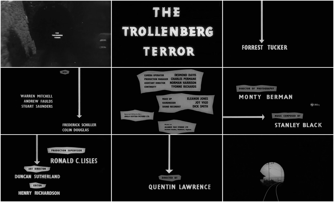 We plunge into a tunnel and out from the darkness careens the title of the film: The Trollenberg Terror, large and unequivocal, like the creature at its core.