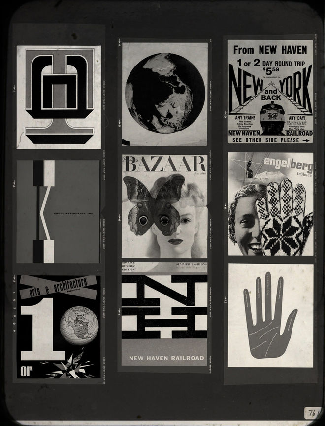 Herbert Matter's expertise and career covered a broad range of techniques and subjects. We wanted as many of these unique facets represented in the titles. We spent many additional days going back through all of Reto's archives and cherry picking our favorite images across all the categories to use as collage elements throughout the piece.