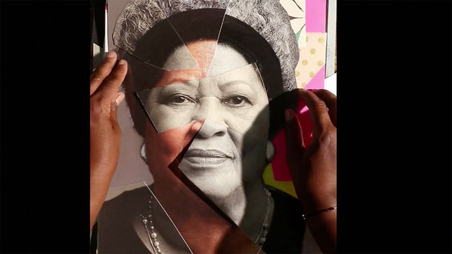 It is her powerful voice that carries us through director Timothy Greenfield-Sanders’ sweeping and intimate documentary Toni Morrison: The Pieces I Am. “She is a friend of my mind,” says Morrison in the opening moments, reading from Beloved, her 1987 Pulitzer Prize-winning novel. “She gather me, man. The pieces I am. She gather them and give them back to me in all the right order.” Her voice is soft and warm and smooth, the cadence measured and even, inviting us into her extraordinary life. We watch as a pair of hands assembles irregular shards of photographs and patterned paper, a scrapbook portrait built, piece by piece, upon itself. The hands belong to Brooklyn-based Mickalene Thomas, a mixed-media artist whose work often takes shape through painting, collage, photography, and video and draws on culture, history, and themes of sexuality, beauty, and power.