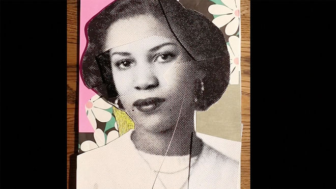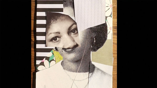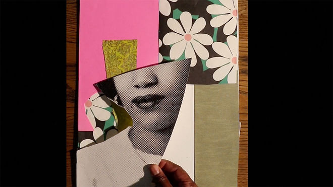 The footage of Thomas’s collage assembly is beautifully buttressed by Kathryn Bostic’s lilting and contemplative jazz score, joined with credits designed by Declan Zimmermann and Perpetual Motion Graphics, and made whole through cuts and rotations by the film’s editor and producer Johanna Giebelhaus.
