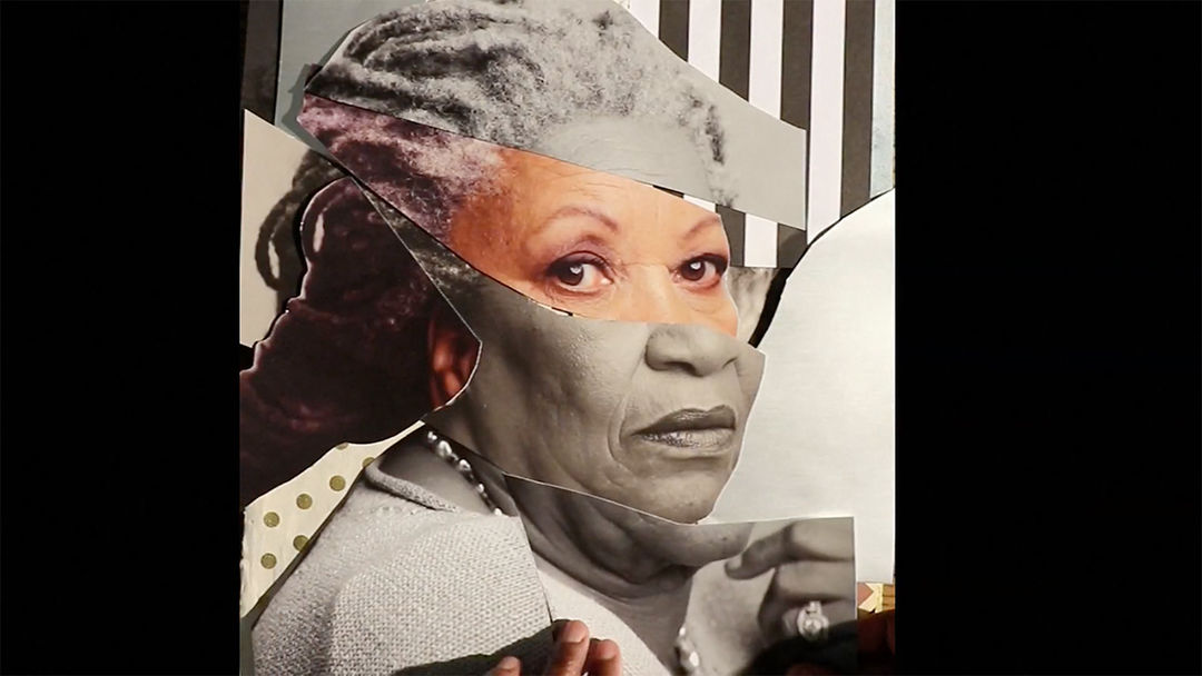 JG: We’re incredibly grateful that she agreed. Her own body of work is so important as an artist, as a contemporary artist, as an African American woman. None of us knew exactly what it was going to be but we were all thinking about collage and this idea of fragments. I think I gave her hundreds of images of Toni. Mickalene worked for several months and then she gave me raw video. She filmed herself making her collage of Toni’s portraits.