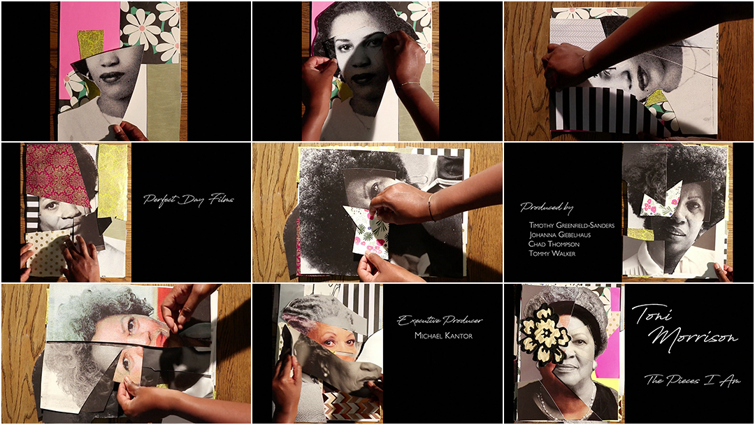 In the opening sequence, Thomas physically gathers pieces of Toni Morrison which include photographs created by Greenfield-Sanders as well as others and arranges them into a shifting video portrait. The opening recalls the style of Morrison’s 1974 nonfiction project The Black Book, “a lavishly illustrated scrapbook spanning three centuries of African-American history, reproducing newspaper clippings, photographs, advertisements, handbills and the like.”