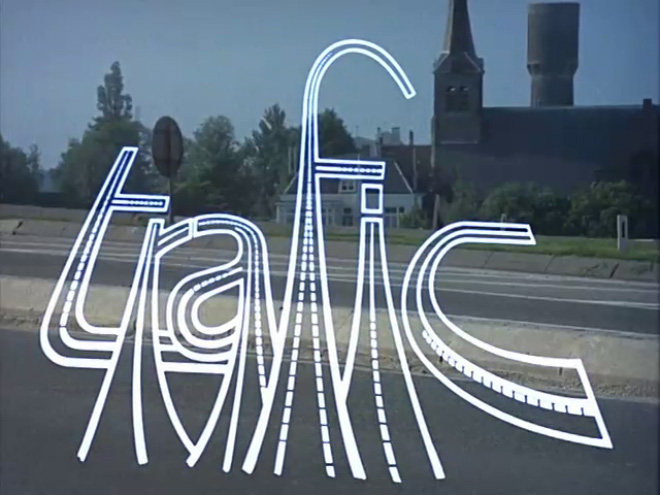 The fourth and final outing of the famous Monsieur Hulot character, Trafic puts the bumbling Hulot (played as ever by director Tati) in the role of an automobile designer. Tasked with bringing his company’s newest product – a gadget-filled “camping car” RV – to an important auto show in Amsterdam, Hulot embarks on a chaotic road trip across Europe. The Trafic opening title sequence acts as the calm before the honk-filled storm.