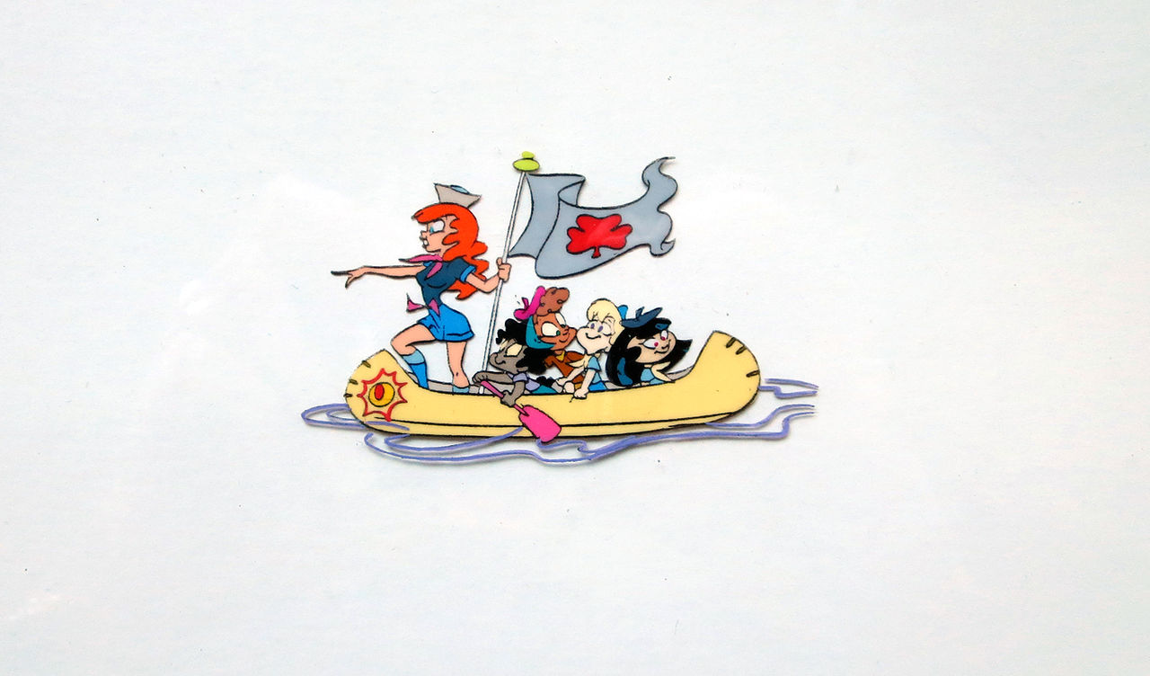 Original hand-inked animation cel featuring Phyllis and the shell of her Swiss army knife