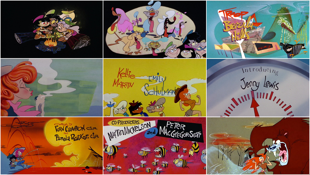 The film centers around Phyllis Nefler (Shelley Long), a flighty housewife determined to prove herself capable by shepherding a troop of wealthy Wilderness Girls. Produced by animation pioneer and director Bill Kroyer’s studio Kroyer Films, the title sequence was created by a team including John Kricfalusi (The Ren & Stimpy Show, The Ripping Friends), Jon McClenahan (Animaniacs), Jim Smith (Mighty Mouse, Ren & Stimpy), Mike Kazaleh (Mighty Mouse, The Simpsons), Kent Butterworth (The Smurfs, He-Man), and Eric Stefani (The Simpsons).