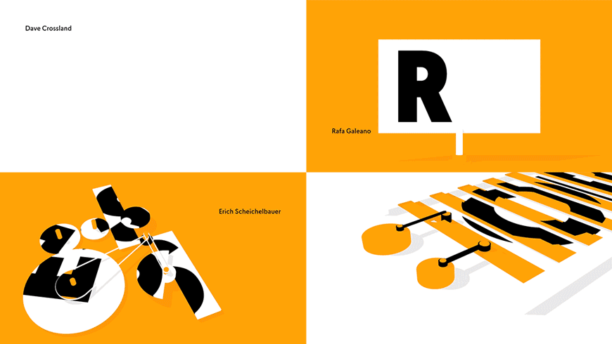 Presenting viewers with a dizzying array of animated puzzles and contraptions, Krielaars renders the initials of Typomad festival speakers as giant letterforms caught in some incredible machine. Mazes, billboards, tile puzzles, and even an old timey thaumatrope become a playground for type; Matteo Taheri’s soundscape imbuing every set of letters with a feeling of fun, each one a new mystery to be unravelled. Letters appear and disappear with subtle changes in perspective or the turn of a dial. Form and meaning are broken down and reassembled by the clockwork of some unknowable geometry. It hides, we seek.