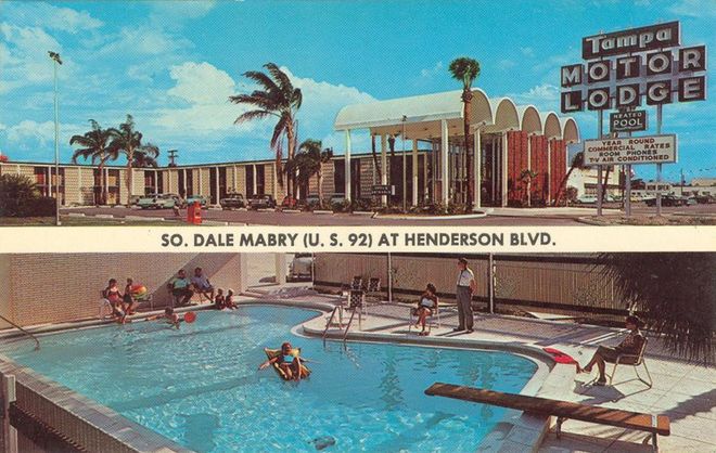 At this point we were looking a lot at postcards from the ’60s and ’70s, specifically ones that feature incredibly dull locations. One was labeled "SO. DALE MABRY (U.S. 92) AT HENDERSON BLVD." Makes you want to visit, right? Can't wait.