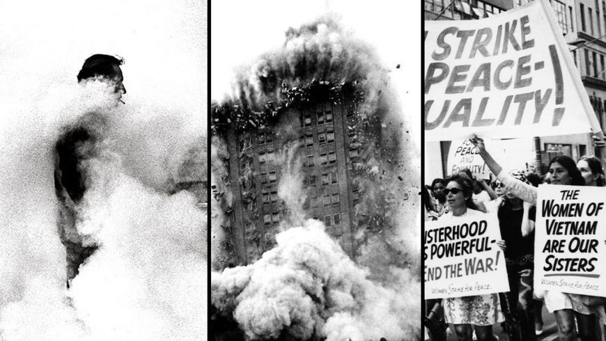 Alan: A huge challenge for us was dealing with various mediums and film stock. Our killer producer, Tess Sitzmann, was a godsend for this job managing all of these various assets throughout each stage. Some footage we used was on 8mm, 16mm, VHS, and even modern SLRs. We loved connecting the visuals of vibrating particles and low-fi photocopied flyers to the grain and degradation of Super 8 film. What distortion pedals did to electric guitars, we wanted to do with our film stock. And so we settled on a look of raw, grainy, black and white film. We shot test early on with a Super 8 camera that really sold this look to HBO.