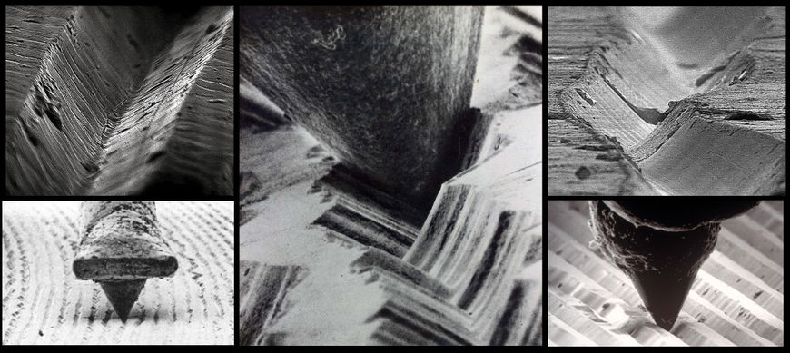 Jess: Because the show was named Vinyl, Alan and I looked for ways we could get around actually showing a record in a traditional sense. I researched alternatives and I came across microscopic photos of record grooves. They looked like a topographical map!