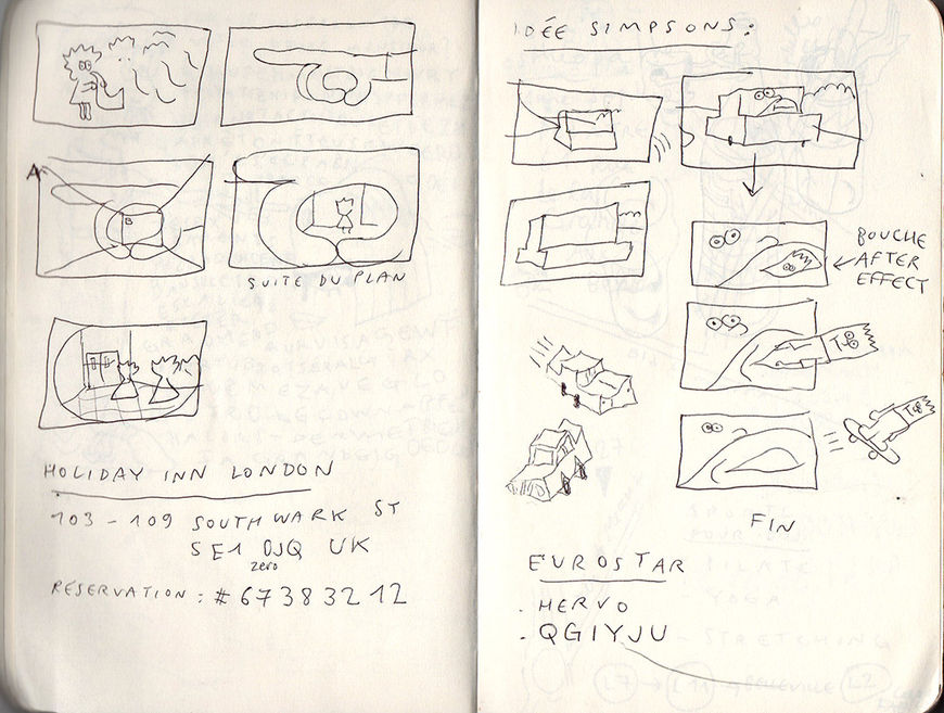 When I had free time, I thought about the way I could reinterpret the shots of the original opening. The dumber, the better! I scribbled ideas in my notebook – some of them were accompanied by very basic drawings.