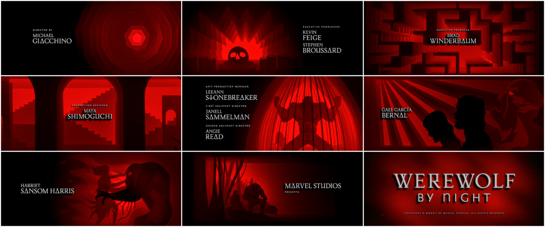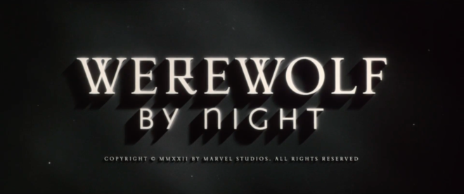 Werewolf by Night (2022) opening Marvel logo created by Perception as well as main title reveal and illustrated prologue created by Sarofsky